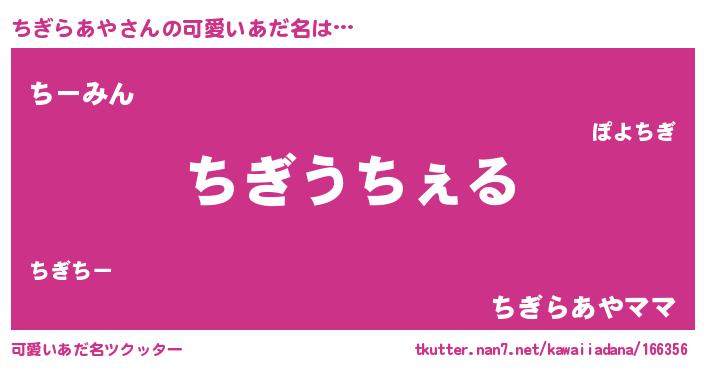 | 意味不明あだ名 | 『自称ちぎらあや』『永久保存ちぎらあや』 |
