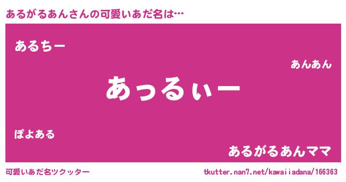 | 意味不明あだ名 | 『とにかく怪しいあるがるあん』 |