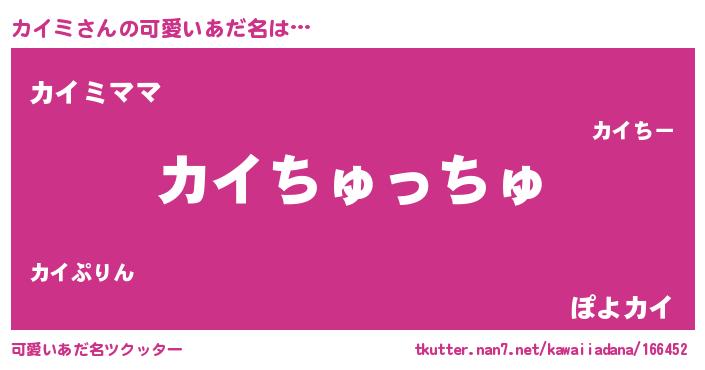 | ヘコむあだ名 | 『カイミ(笑)』『なまこ酢』『カイを』 |