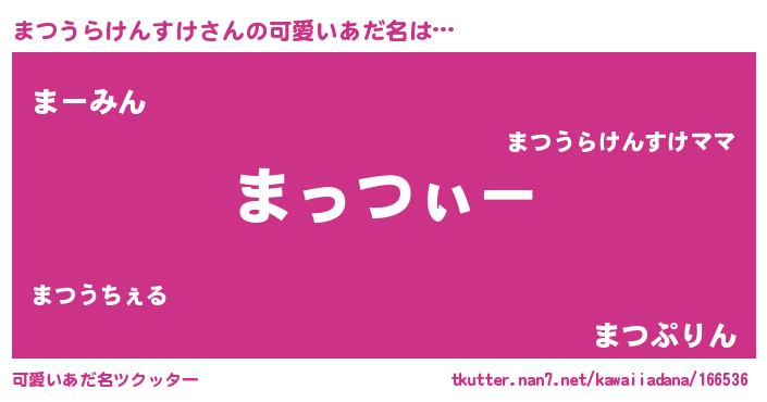 | 男性向けラノベタイトル風あだ名 | 『まつうらけんすけの嫁は女の子じゃないと思った?』 |