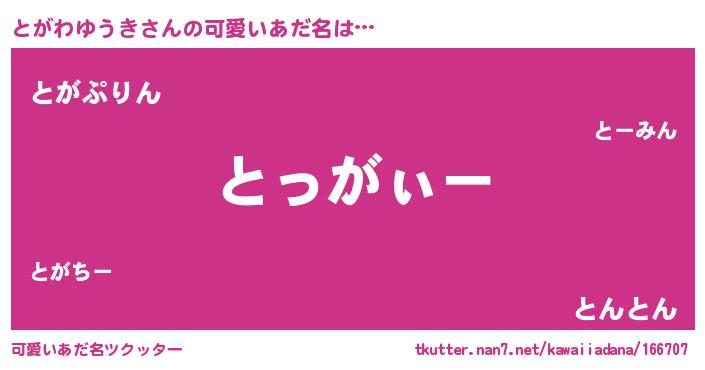 | 女子向けラノベタイトル風あだ名 | 『とがわゆうきの卵を拾いまして』 |