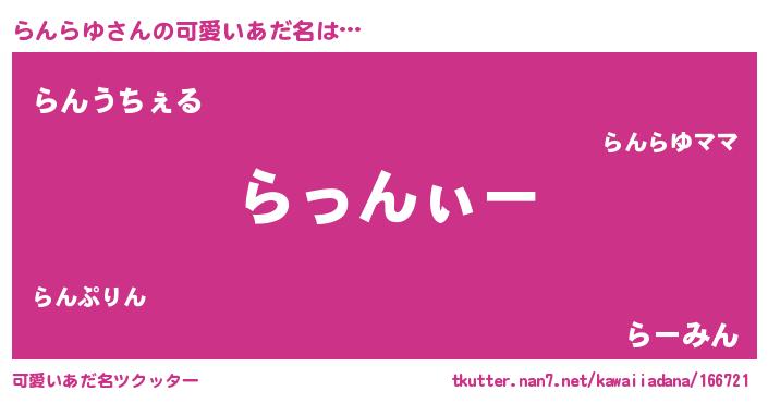 | ヘコむあだ名 | 『らんぷりん』『らんらゆ(笑)』 |