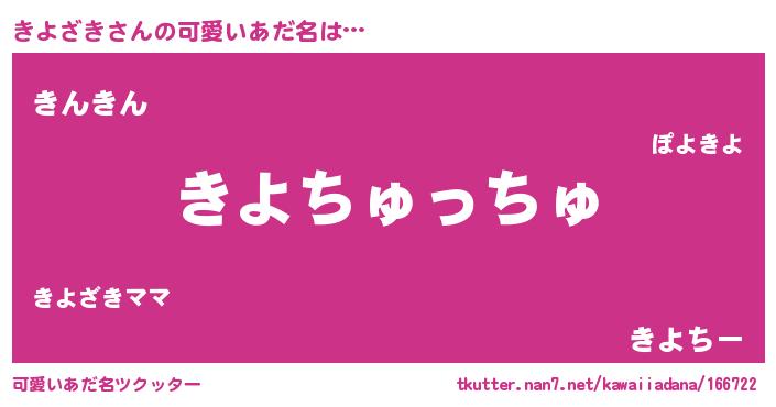 | ヘコむあだ名 | 『きよもー』『なまこ酢』『きよを』 |