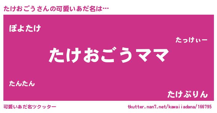 | ヘコむあだ名 | 『たけおごう(笑)』『たけっちょ』 |