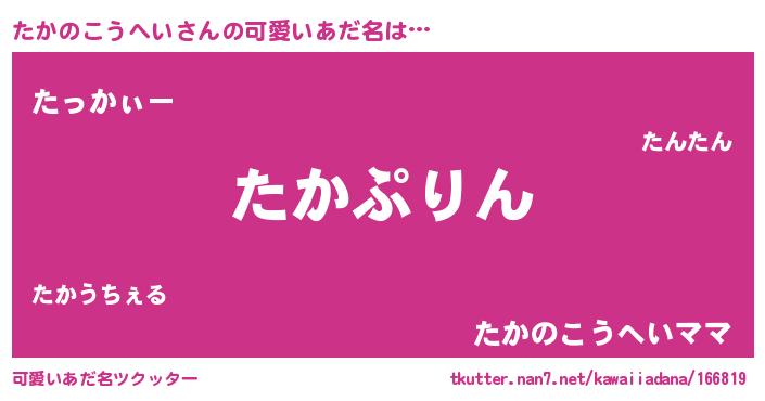 | ヘコむあだ名 | 『たかぷりん』『たかのこうへい(笑)』 |