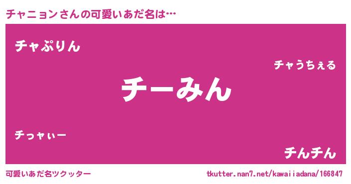 | 恥ずかしいあだ名 | 『プリティーチャニョン』『チャリンリン』 |