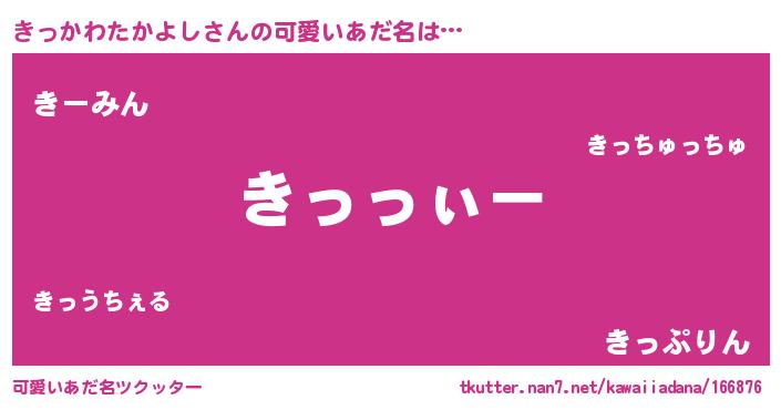 | 男性向けラノベタイトル風あだ名 | 『きっかわたかよしの嫁は女の子じゃないと思った?』 |