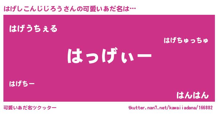 | 男性向けラノベタイトル風あだ名 | 『はげしこんじじろうの嫁は女の子じゃないと思った?』 |