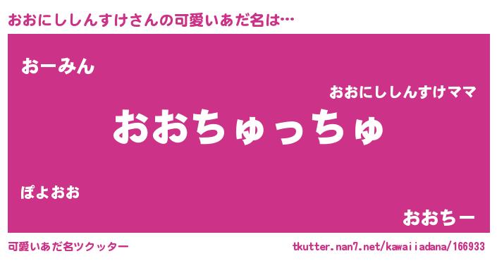 | 男性向けラノベタイトル風あだ名 | 『ノーゲーム・ノーオオニシシンスケ』 |