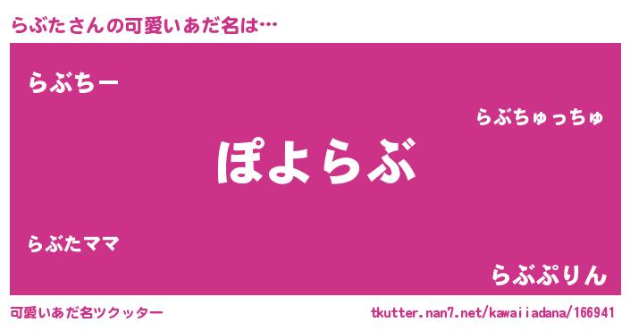 | ポケモン風あだ名 | 『ラーブイ』『ラブタダネ』 |
