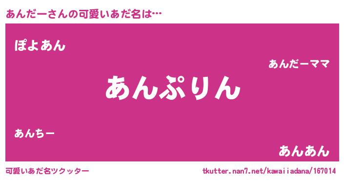 | 恥ずかしいあだ名 | 『プリティーあんだー』『あんちん』 |