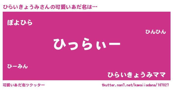| ヘコむあだ名 | 『ひらを』『ひらいきょうみ(爆)』 |