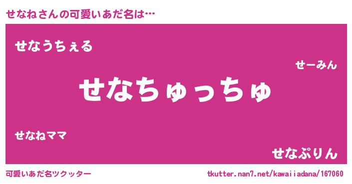 | ヘコむあだ名 | 『せなね(遠い目)』『せなっぺ』 |