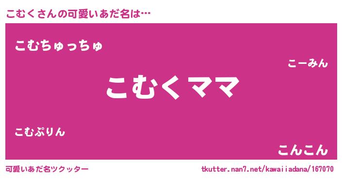 | 意味不明あだ名 | 『永久保存こむく』『ペロリンこむく』 |