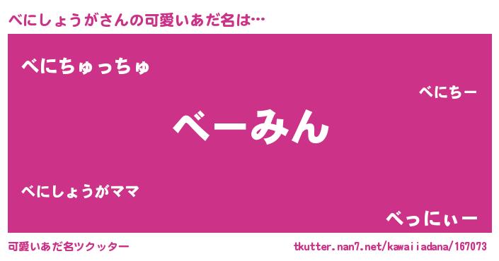 | ヘコむあだ名 | 『べにを』『酢こんぶ』『べにふぇ~』 |