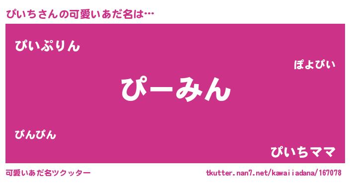 | ヘコむあだ名 | 『ぴいち(笑)』『ぴいもー』『豆乳』 |