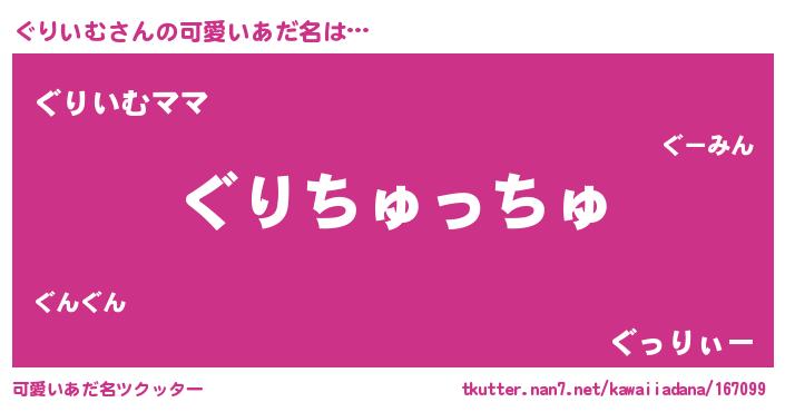 | ヘコむあだ名 | 『ぐりいむ(小並感)』『ぐりお』 |