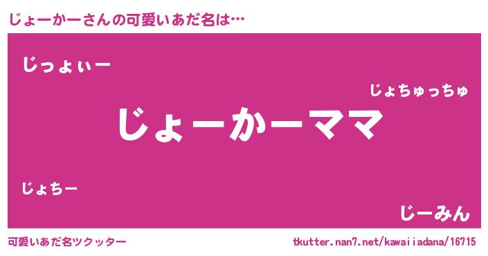 | ヘコむあだ名 | 『じょーかー(爆)』『じょ太郎』 |