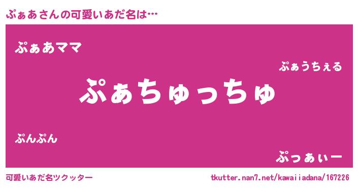 | ヘコむあだ名 | 『ぷぁあ(遠い目)』『ぷぁっちょ』 |
