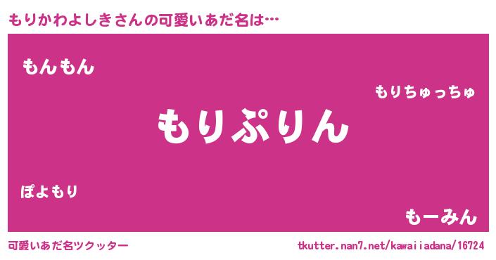 | 男性向けラノベタイトル風あだ名 | 『転生したらもりかわよしきだった件』 |