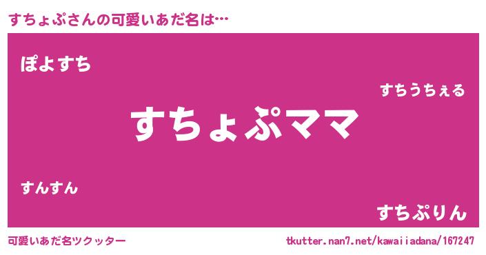 | 意味不明あだ名 | 『永久保存すちょぷ』『自称すちょぷ』 |
