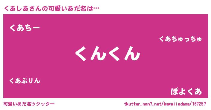 | 2回繰り返すあだ名 | 『くあくあ』『くくああ』『ぷくぷく』 |