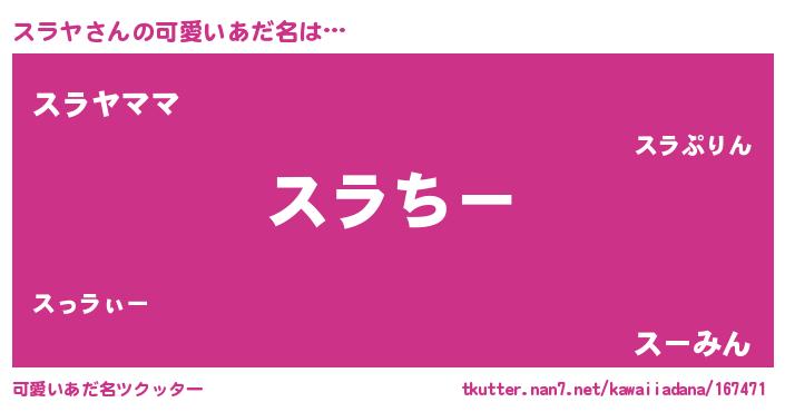 | ヘコむあだ名 | 『牛乳』『スラヤ(笑)』『スラっ子』 |