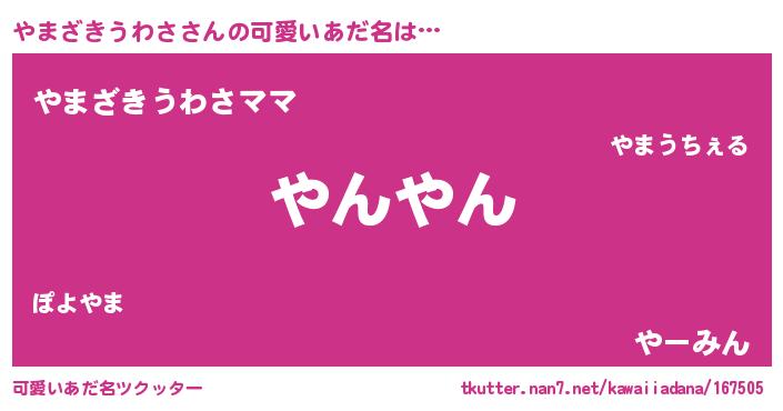 | 恥ずかしいあだ名 | 『プリティーやまざきうわさ』『やまちん』 |