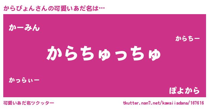 | ヒーロー風カッコイイあだ名 | 『慈愛の使者からぴょん』『仮面カラダー』 |