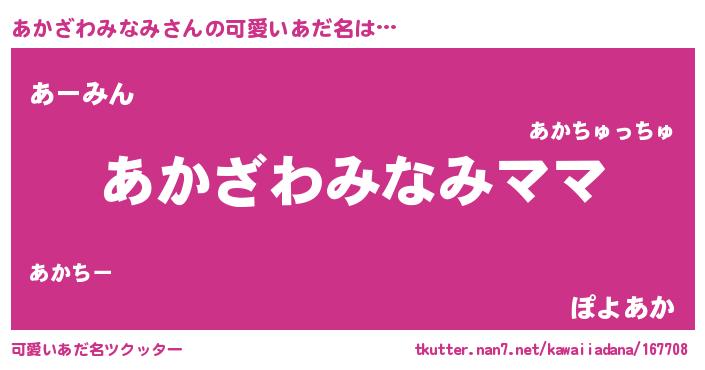 | 男性向けラノベタイトル風あだ名 | 『誰もが恐れるあのあかざわみなみが、ぼくの専属メイドになるようです。』 |