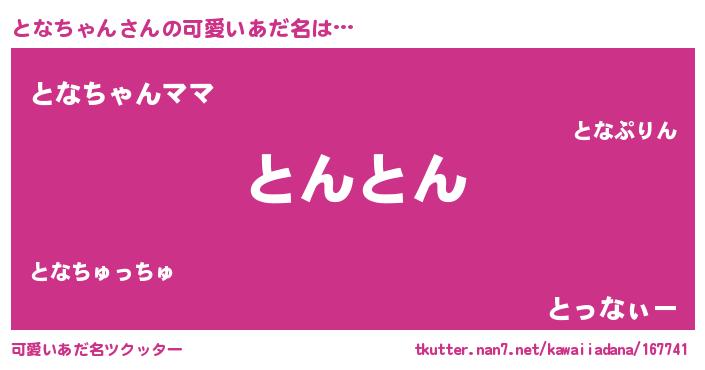 | ポケモン風あだ名 | 『トナチュウ』『ゼニトナ』 |