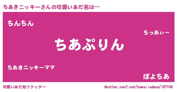 | 男性向けラノベタイトル風あだ名 | 『ちあきニッキー~年齢イコール彼女いない歴の魔法使い~』 |
