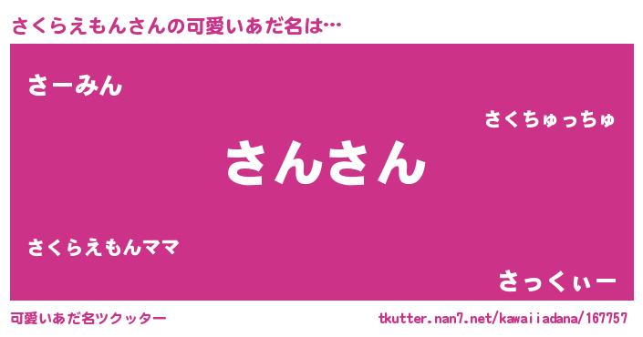 | 恥ずかしいあだ名 | 『プリティーさくらえもん』『さくちん』 |