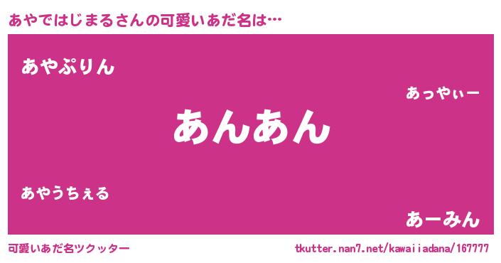 | 恥ずかしいあだ名 | 『プリティーあやではじまる』『あやちん』 |