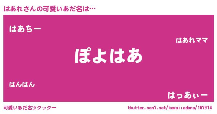 | ポケモン風あだ名 | 『ハーアイ』『ハアレダネ』 |