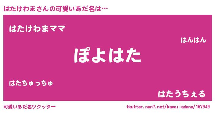 | ヘコむあだ名 | 『はたけわま(苦笑)』『はたにゅー』 |