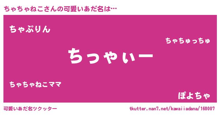 | ヘコむあだ名 | 『ちゃっぺ』『ちゃちゃねこ(苦笑)』 |