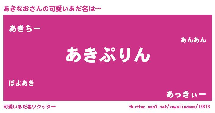 ヘコむあだ名 | 『豆乳』『あきぷりん』『あきにゅー』 |