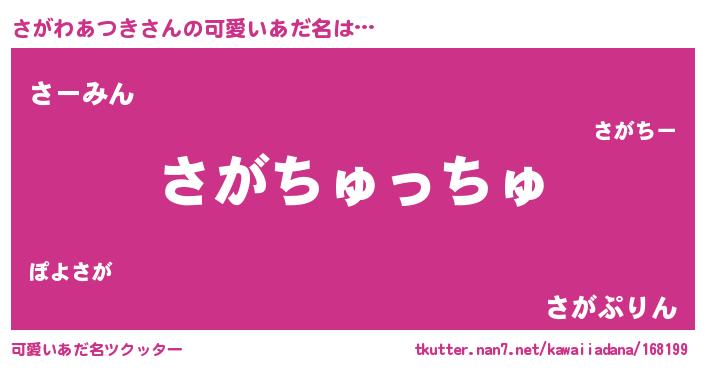 | 男性向けラノベタイトル風あだ名 | 『おまえをオタクにしてやるから、俺をさがわあつきにしてくれ! 』 |