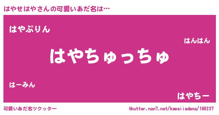 | ヒーロー風カッコイイあだ名 | 『友情の使者はやせはや』『仮面ハヤダー』 |