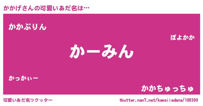 | 男性向けラノベタイトル風あだ名 | 『緋弾のカカゲ』『カカゲスレイヤー』 |