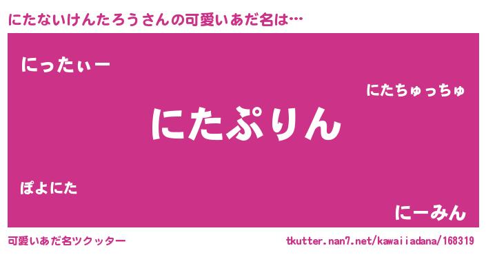 | 男性向けラノベタイトル風あだ名 | 『転生したらにたないけんたろうだった件』 |