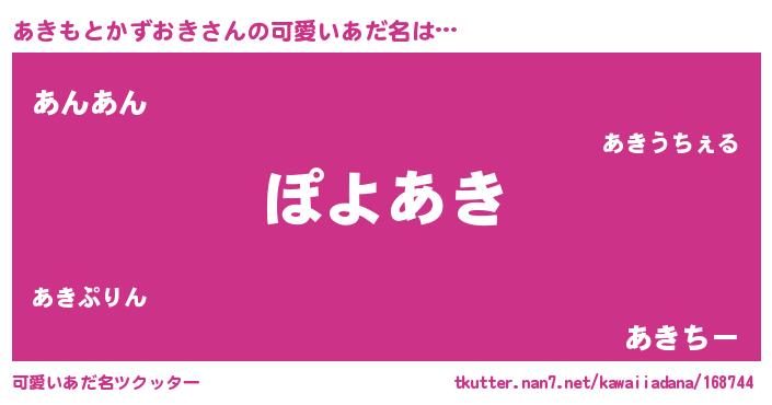 | 意味不明あだ名 | 『住所不定無職あきもとかずおき(2歳)』 |