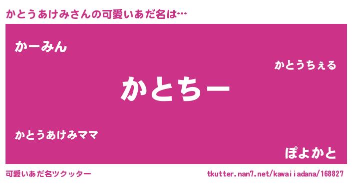 | 恥ずかしいあだ名 | 『かとっちょ』『カトウアケミデラックス』 |