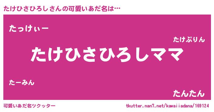| ヘコむあだ名 | 『たけひさひろし(遠い目)』『たけを』 |