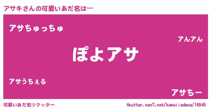| 意味不明あだ名 | 『住所不定無職アサキ(2歳)』『自称アサキ』 |