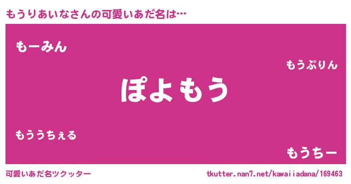| 意味不明あだ名 | 『住所不定無職もうりあいな(2歳)』 |