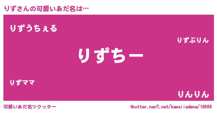 | ヘコむあだ名 | 『なまこ酢』『りずふぇ~』『りずを』 |