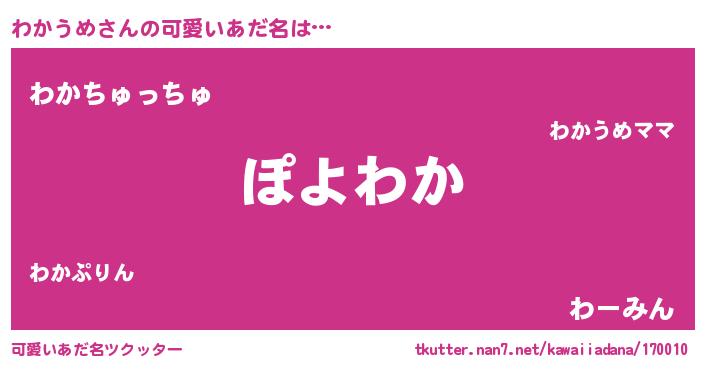 | 女子向けラノベタイトル風あだ名 | 『わかうめが死なない童話 林檎のわかうめの診療簿』 |
