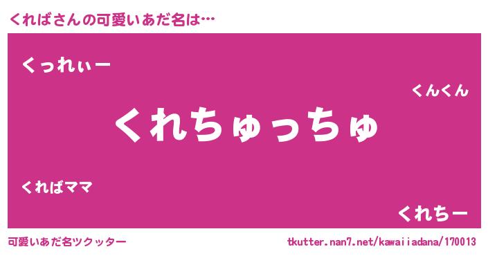 | ヘコむあだ名 | 『くれっちょ』『つくし』『くれもー』 |